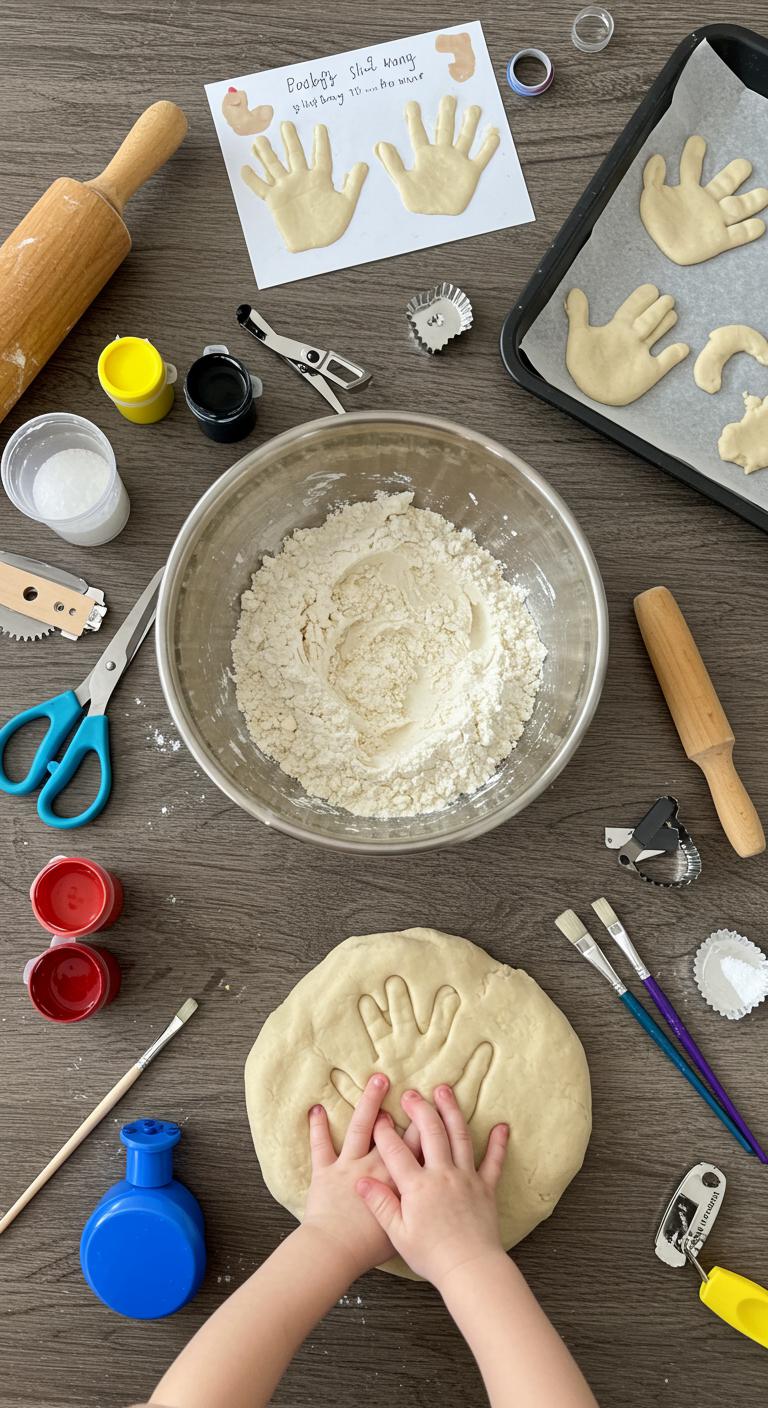 When you mix flour, salt, and water into a soft dough, you’ll have the perfect base for a handprint keepsake that captures a moment in time; press a small hand into the dough, trim the edges, and bake or air-dry to harden.