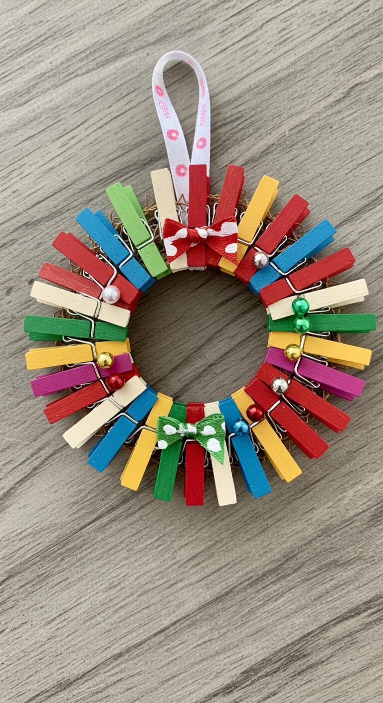 When you clip clothespins around a small foam or cardboard ring, you’ll quickly see a mini wreath take shape—each pin becomes a petal-like segment that’s easy to decorate.