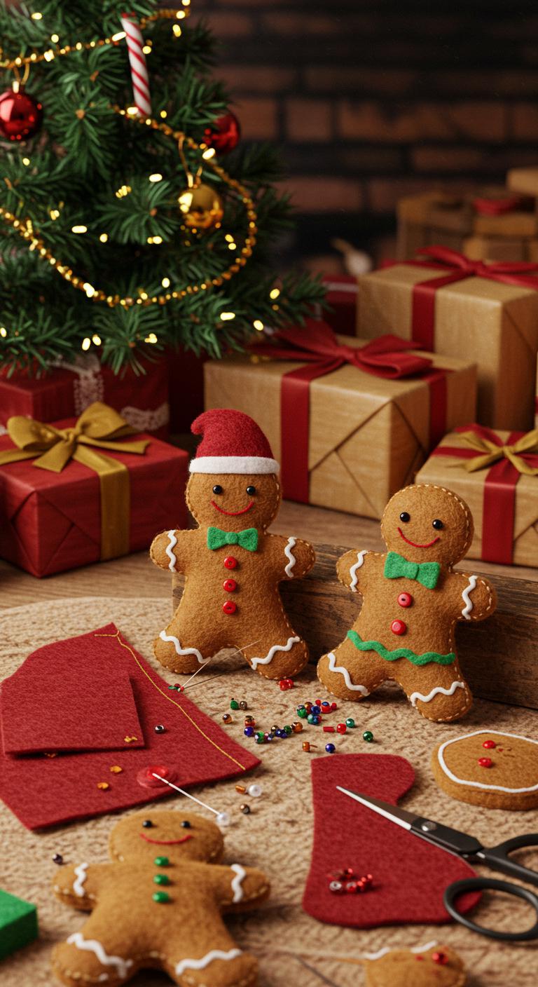 Trace miniature felt patterns, cut two bodies, stitch edges leaving a gap, stuff lightly, then close. Add gingerbread embellishments—tiny stitched smiles, bead buttons, ribbon loops—and hang or gift with playful freedom.