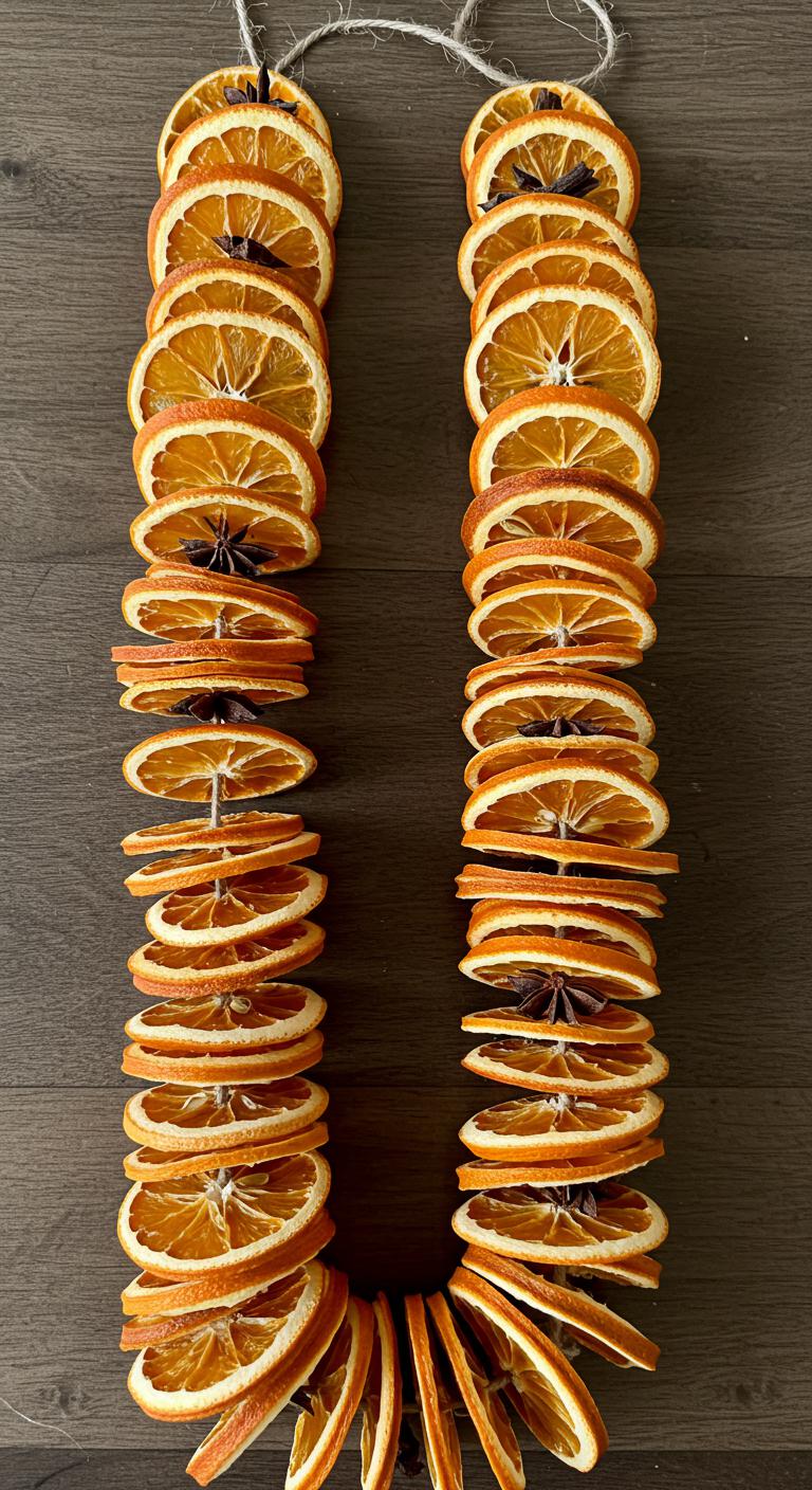 Sun-dried orange slices bring a warm, citrusy glow to your garland and are surprisingly simple to make: slice oranges thinly, pat them dry, and bake them low and slow until translucent.