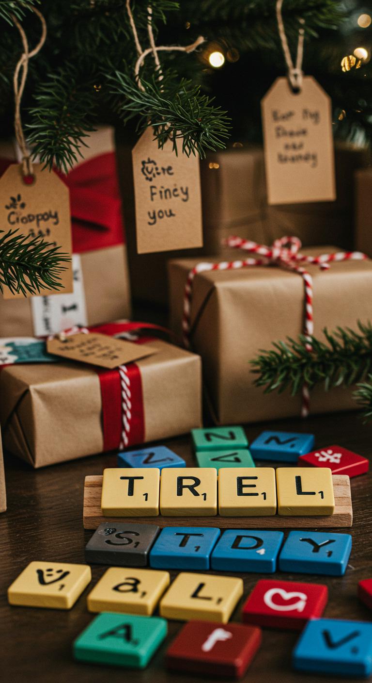 If you liked how the beaded snowflake played with light, you’ll enjoy how Scrabble tile name tags play with letters and texture—small, personal, and great for hanging on gifts or tree branches.