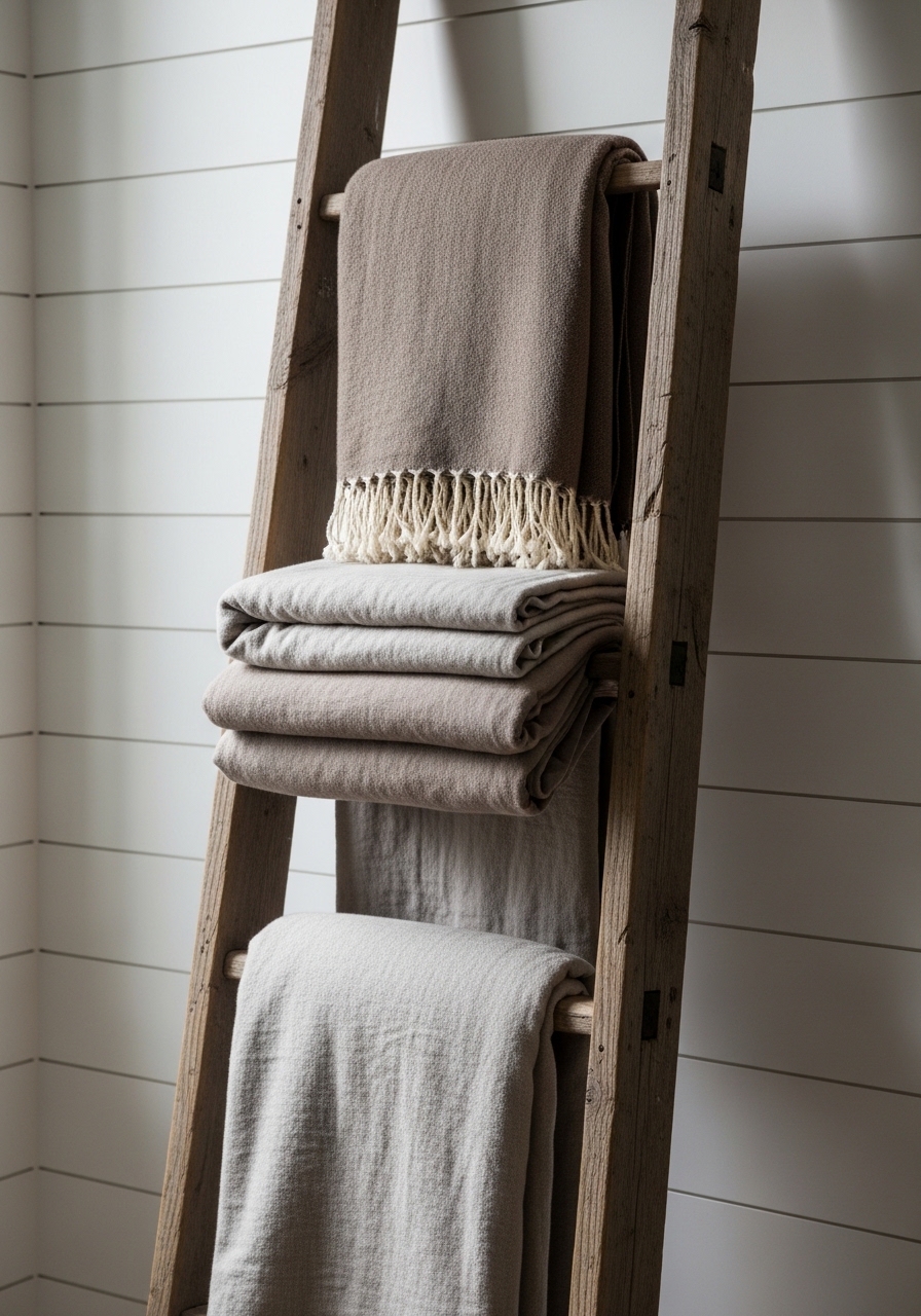 Repurpose an old ladder into a blanket holder for that rustic touch in your bedroom or living area – it’s so simple and costs almost nothing if you find one at a garage sale. Drape your favorite throws and quilts for easy access. I made one last fall, and it not only organizes but adds serious charm; plus, it’s way cheaper than buying a new rack.