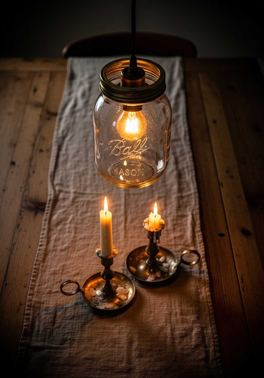 Turn old jars into pendant lights for that custom urban farmhouse glow without the cost of new fixtures. Wire them simply with kits from hardware stores. I installed one over my dining table, and it casts the perfect ambiance; friends think I hired a designer, but it was all DIY.