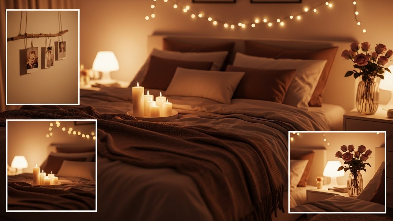 You’ll create a cozy, intimate retreat that feels both effortless and thoughtfully planned. Start with layered, warm lighting and plush textiles, add personal touches like photos or a memory branch, and mix fresh florals with candlelit vignettes. Practical tips and budget swaps make this achievable, and safety notes keep it worry-free—so you can focus on the mood and finish the little details that make it undeniably romantic.