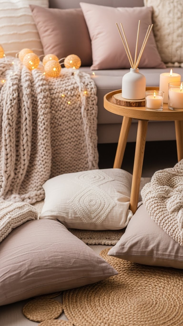 Choose a seasonal scent like spiced orange or cedar to lift the air. These tiny, freeing swaps let the room breathe warmth and invitation.