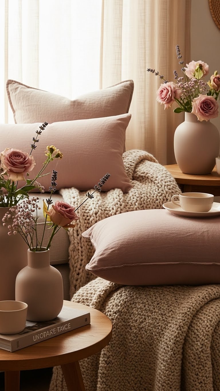 A few carefully chosen hues will set the whole mood, so stick to a soft, limited palette of blush pinks, warm creams, gentle taupes, and a touch of muted mauve to keep things cozy without feeling saccharine.