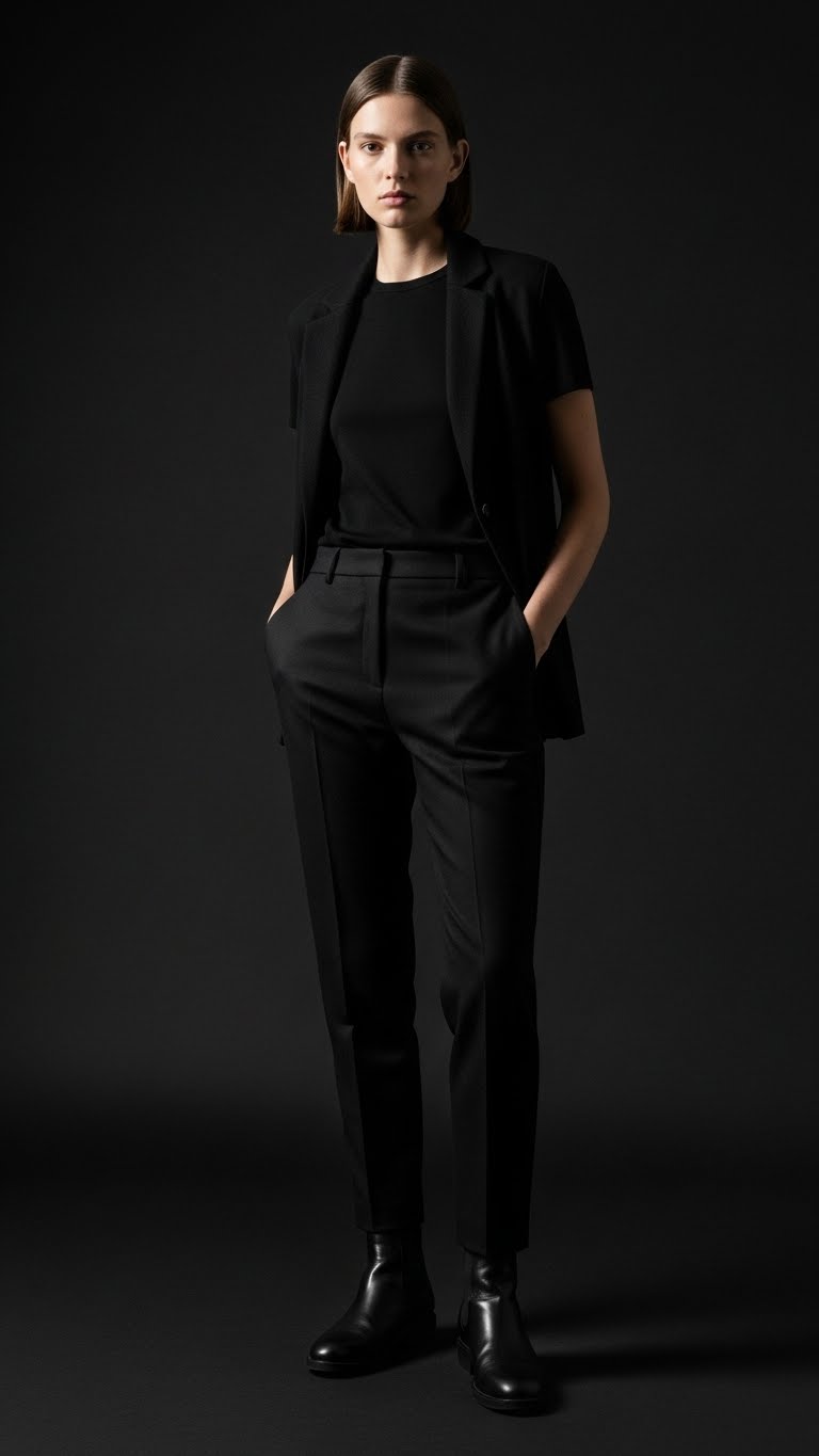When you commit to an all-black minimalist look, you’re choosing clean lines, refined textures, and a quiet confidence that reads modern and effortlessly chic.