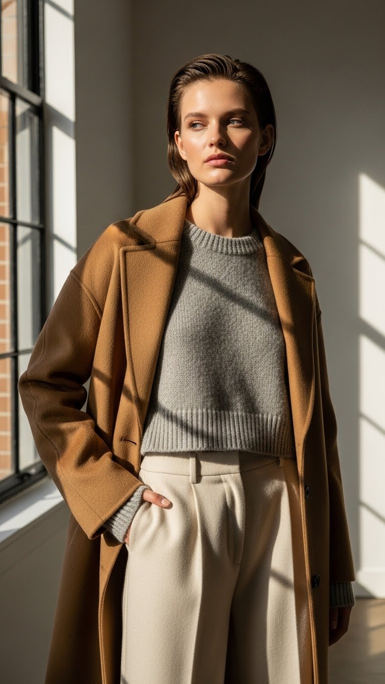 When you top breathable knit basics with a sculpted cashmere or boiled-wool coat, the outfit reads like quiet luxury: rich hand, clean lines, and instant polish.