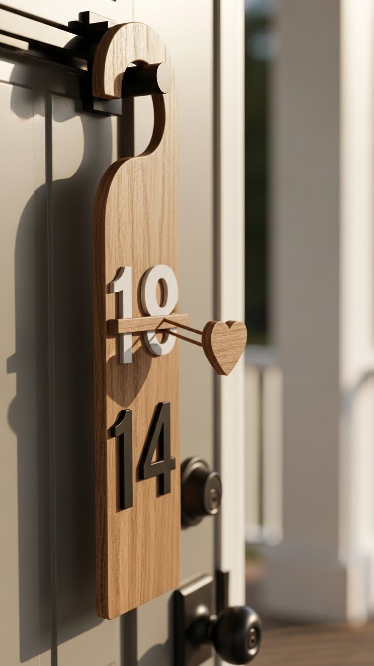Hang a Wooden 14 Door Hanger with a sliding heart accent to give your entry an instant, modern-valentine moment. You’ll love the minimalist line and movable sliding heart that adds playful motion without clutter.