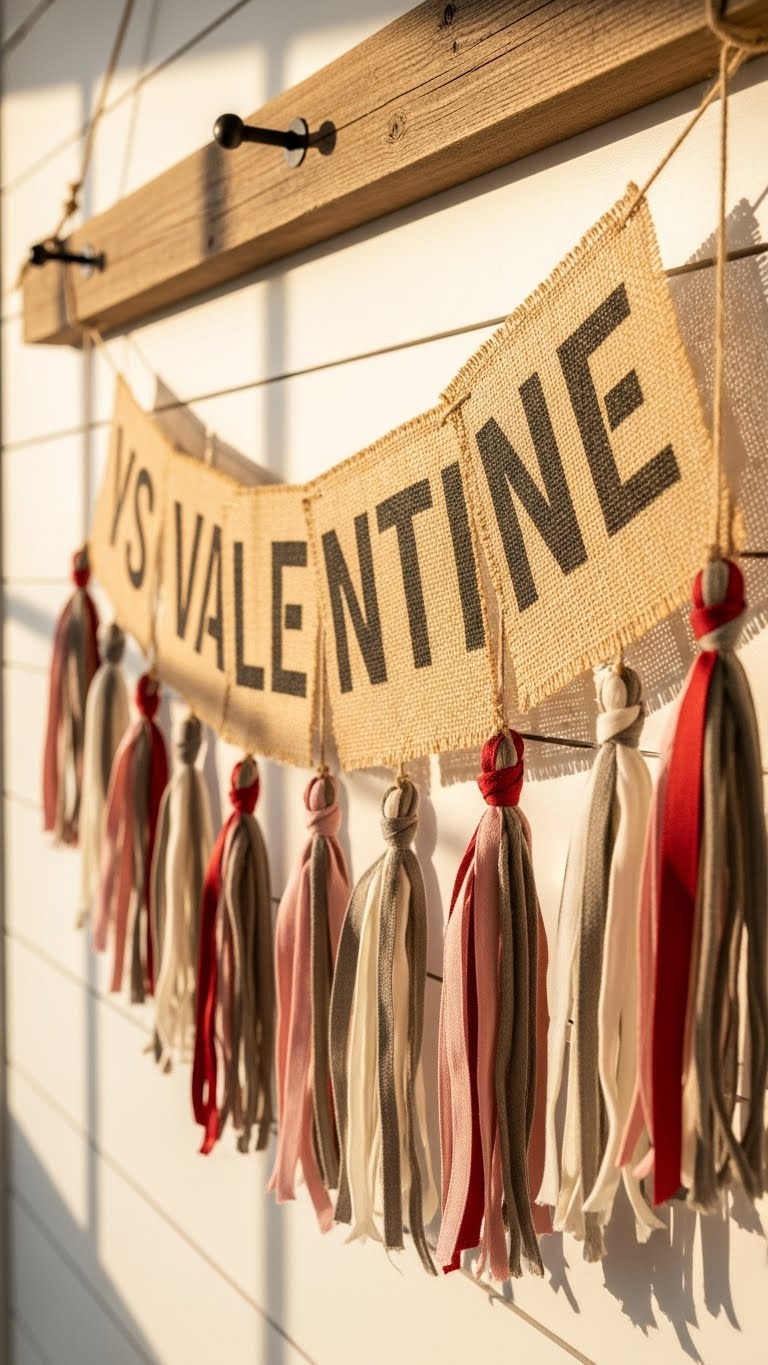 With a few yards of burlap, some pretty ribbon, and basic craft tools, you can create a chic Valentine banner that gives your entryway instant farmhouse charm.