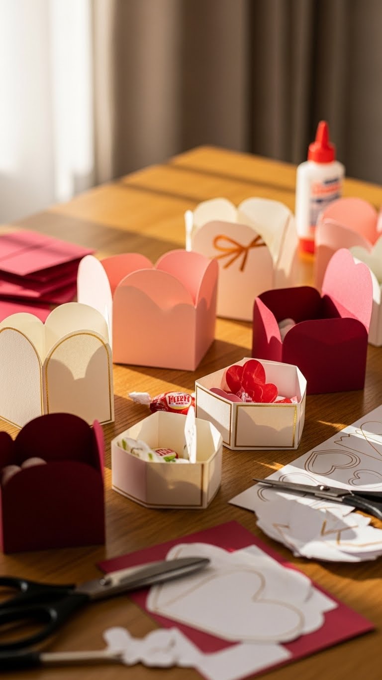 If you want a quick, stylish way to present treats this Valentine’s, pop-up heart gift boxes and treat holders give you handcrafted charm without fuss. You’ll cut simple templates, fold crisp creases, and glue tabs for clean edges. Add interactive popups and tiny surprise compartments to tuck candies or notes. They’re bold, portable, and let you gift with effortless, liberated flair.