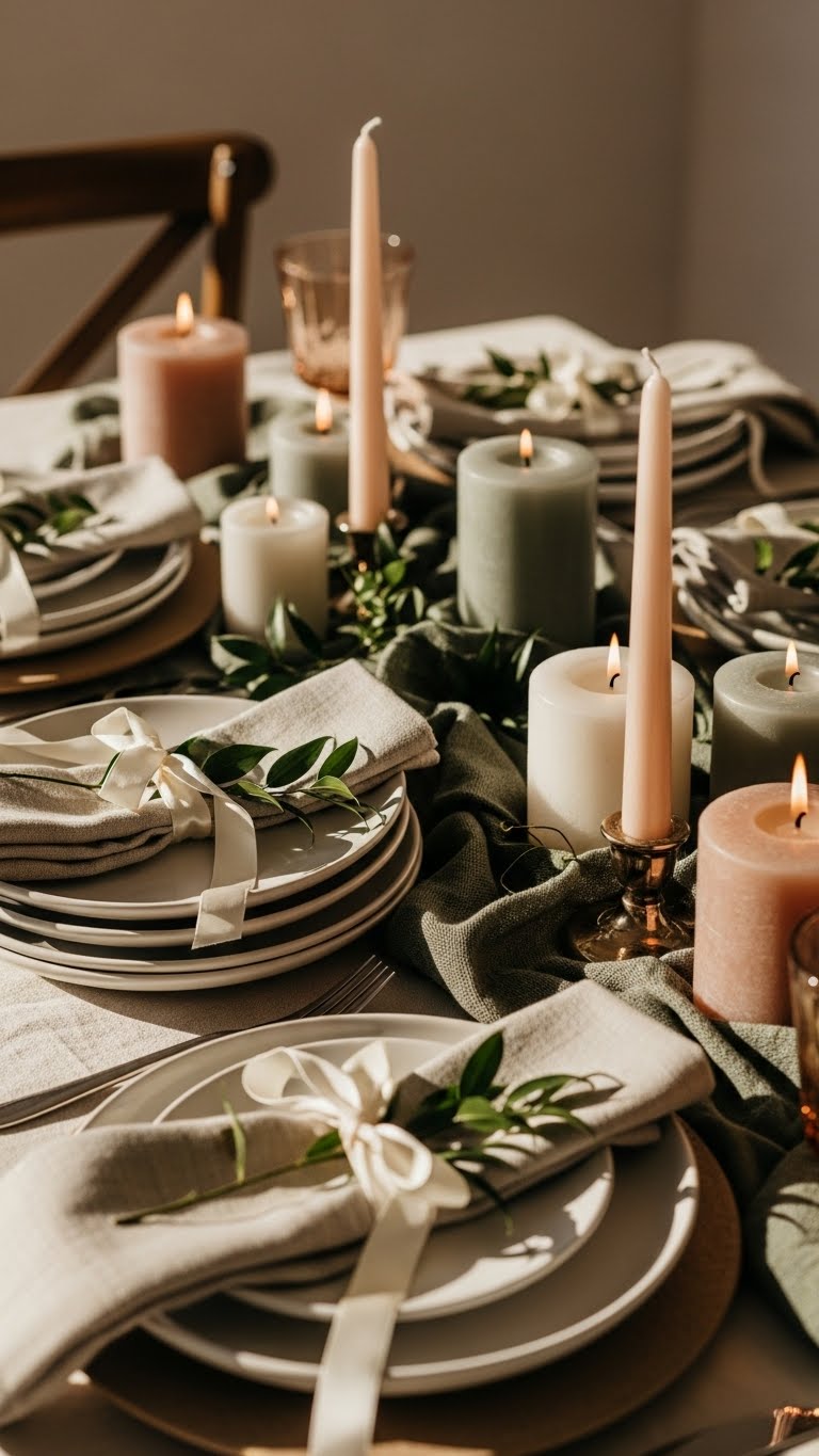 You’ve layered ribbon, fabric and greenery with care; now bring in the small, considered details that read as effortless and elevated. Tie delicate silk ribbonwork around stacked plates, tuck sprigs into linen napkins, and add matte candles for warmth. Keep palettes restrained, textures rich, and placements relaxed—Martha-inspired precision without fuss—so your space feels curated, free, and effortlessly celebratory.