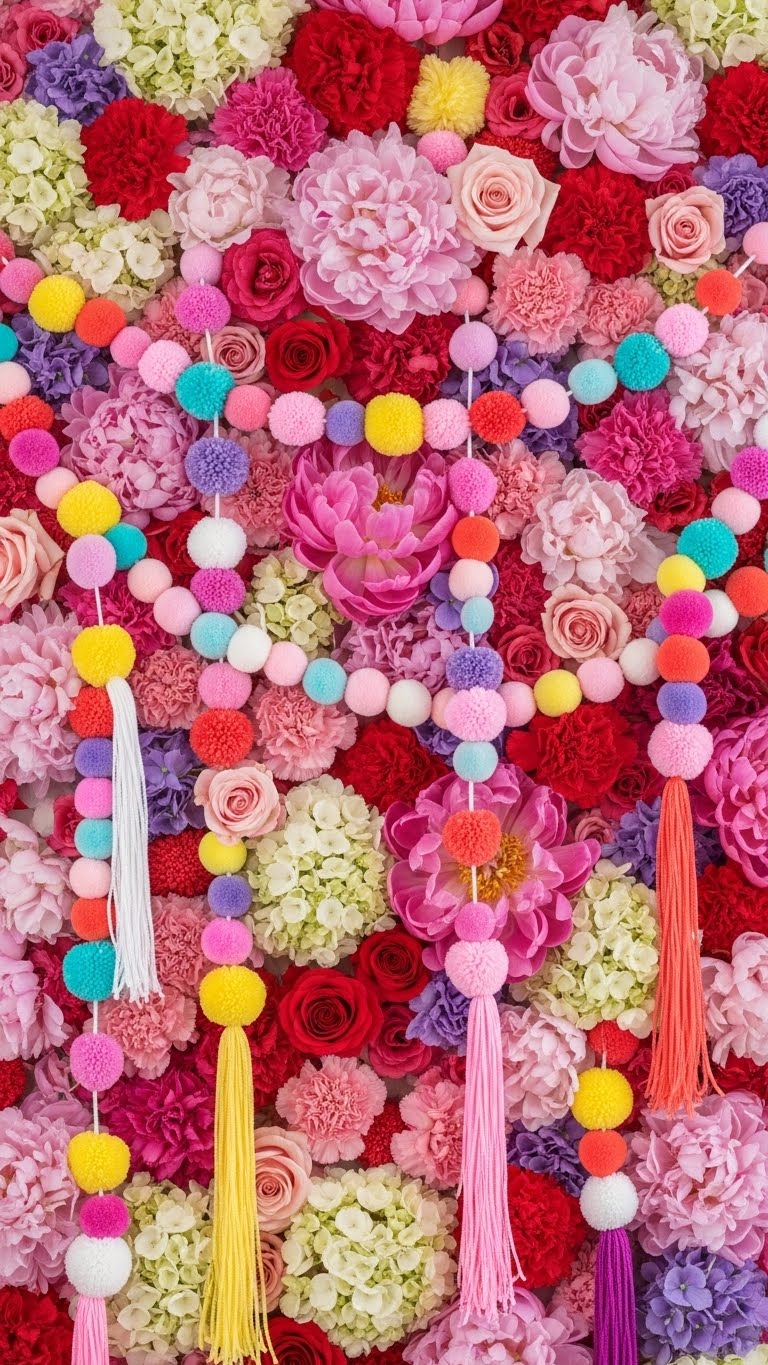 Add colorful pom-poms and garlands for joy. Grab craft supplies for pennies. Hang in clusters on your wall. This creates energy fast. DIY example: String items with thread and attach. Mix colors freely. Your space feels fun and uplifting. Budget find: Use old decorations. It costs nothing extra. Keep it packed but balanced. Try this for parties or alone time.