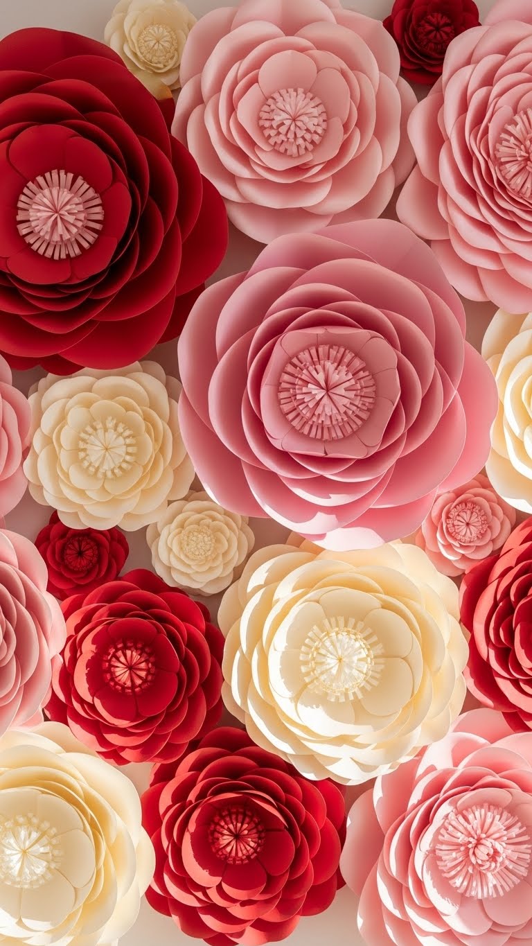 Create big paper flowers for wow factor. Use newspaper or colored sheets you own. Cut and shape then mount. This transforms walls quickly. Budget hack: No purchases needed. DIY example: Fold petals and staple to the wall. Add real centers for mix. Your space feels grand. Do it for under $1.