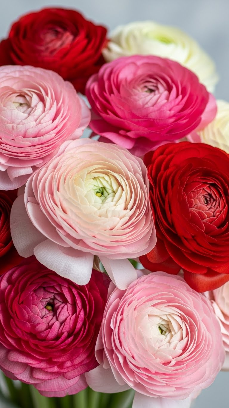 Spotlight ranunculus for soft texture. Buy a couple for cheap. Place in wall pockets. This adds elegance. DIY tip: Layer with greens. Keep it simple. Your wall gains softness. Cost: A few dollars. Try for texture play.