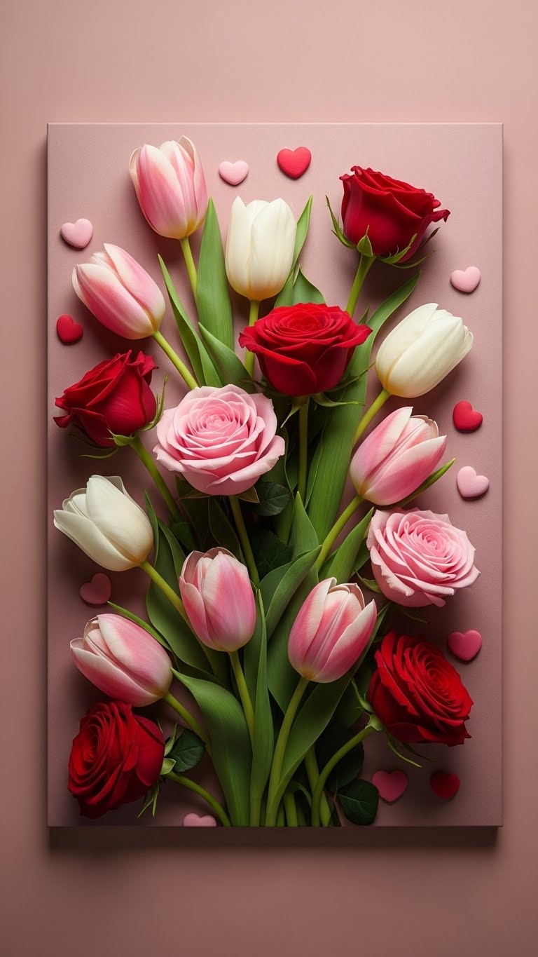Mix tulips and roses for pairs. Select a few stems. Arrange side by side on the wall. This means connection. DIY: Use vases in a row. Budget: Store deals. Your wall speaks love.