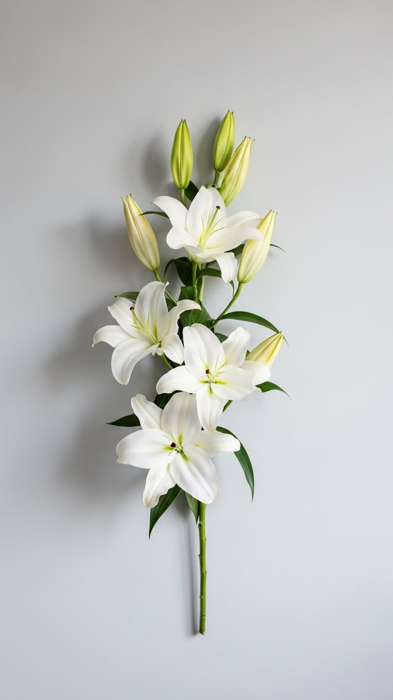 Go with white lilies for clean style. Place on a bar. This means purity. DIY: Basic setup. Cost: Cheap. Your wall shines.