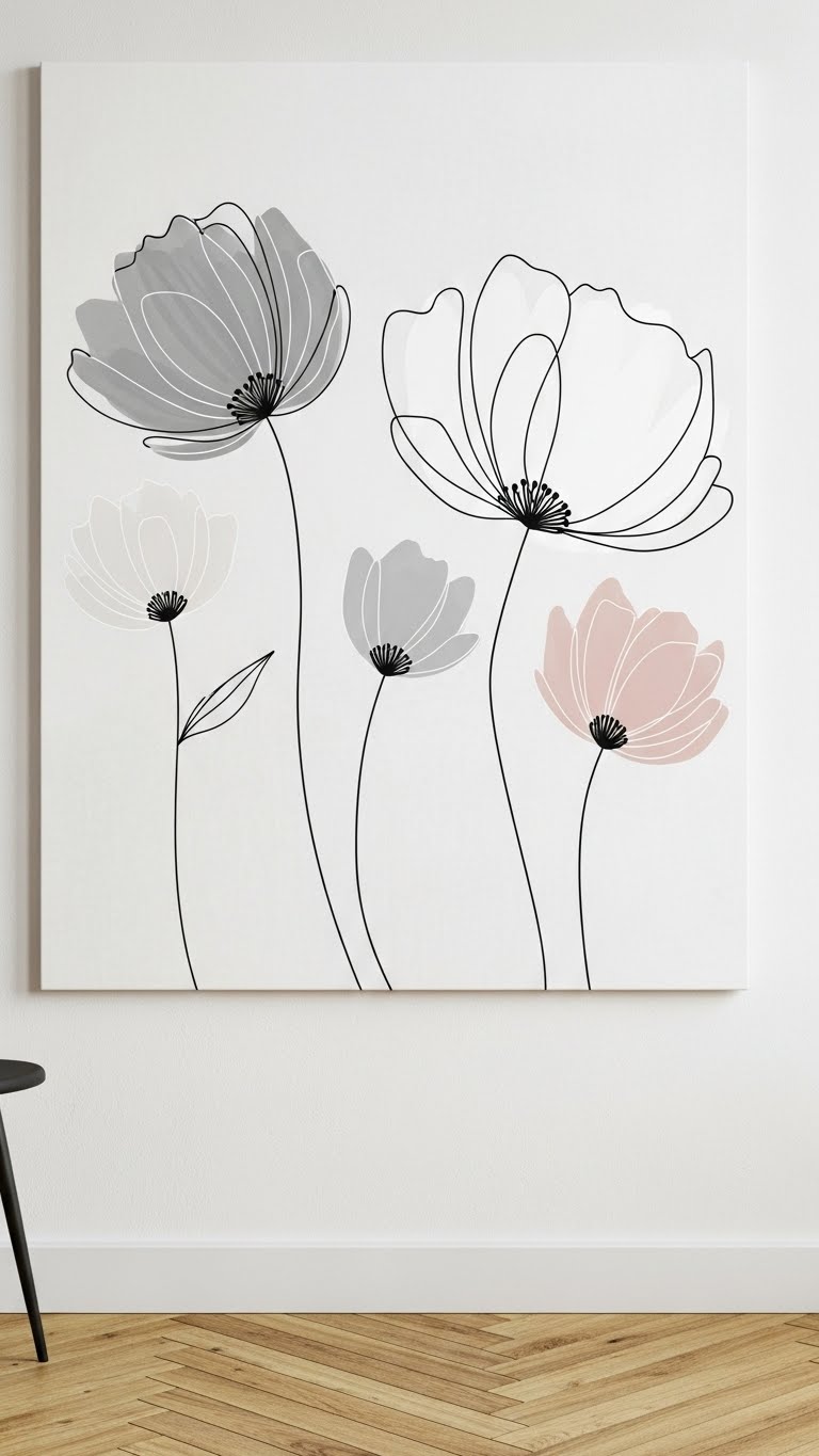 Keep it Nordic with few elements. Select sparse blooms. Mount plainly. This is elegant. DIY: Straight lines. Cost: Minimal. Your wall calms.