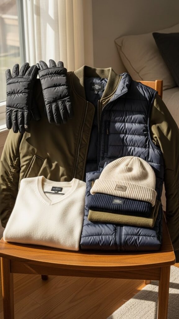You’ll want Thermal beanies for warmth without bulk, Insulated gloves that stay nimble, and a lightweight down vest for layering.