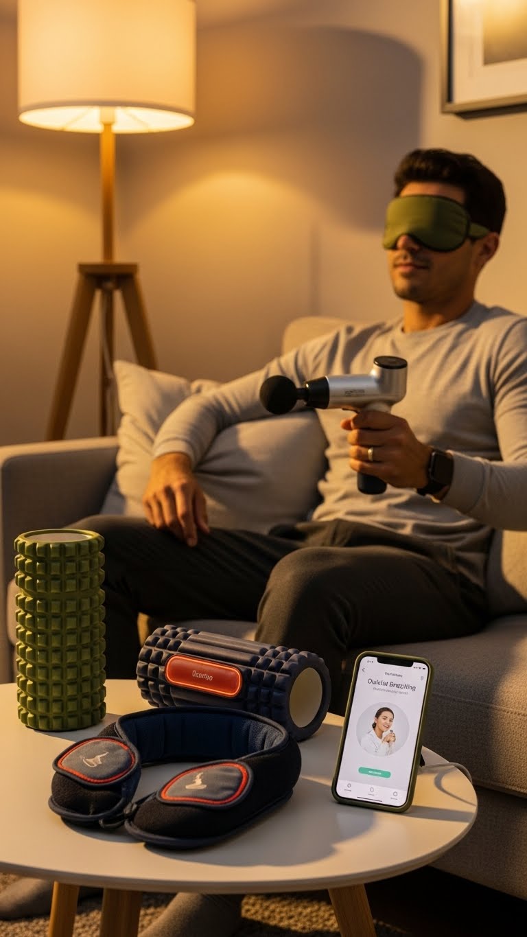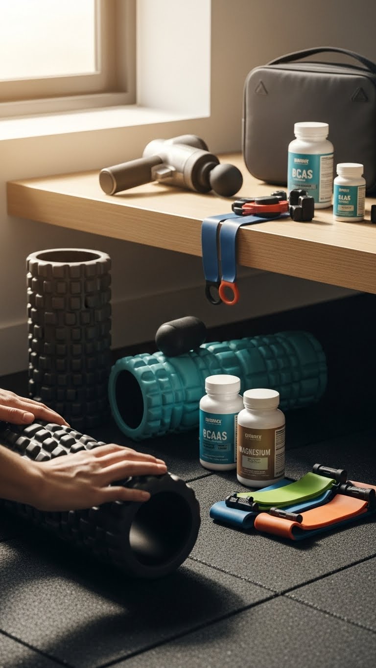 Choose foam rollers, massage guns, and mobility bands for easy post workout stretch routines that speed relief. Toss in quality recovery supplements like BCAAs or magnesium for better sleep and muscle repair. Practical, portable tools keep him free to train harder, recover faster, and roam.