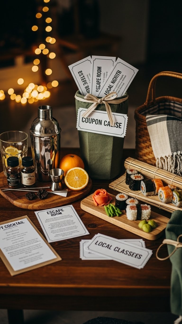 When you want to make a night memorable without breaking the bank, DIY date kits and local activity vouchers are a smart, personal way to show you care; they let you tailor an experience to his tastes—think craft cocktail kits, at-home sushi sets, or tickets to a nearby escape room. Pack a Picnic kit, add a Coupon chalice of favors, pick local classes, and go.
