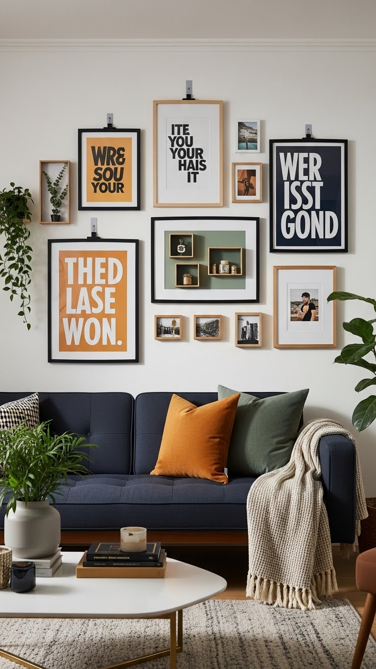 Choose pieces that reflect his vibe, mix gallery wall layouts with shadow boxes for depth, and opt for removable hanging systems so he can rearrange freely without commitment.