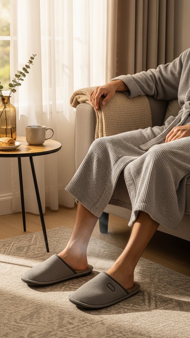 Slide into something that feels like a gentle hug—think plush robes and easy-slip slippers that turn ordinary downtime into a small daily ritual. Pick breathable fabrics, a relaxed cut, and a plush spa robe that breathes while you lounge. Add heated slippers for chilly mornings, and you’ll give him comfort and autonomy—stylish, low-maintenance pieces that encourage slow moments without ceremony.
