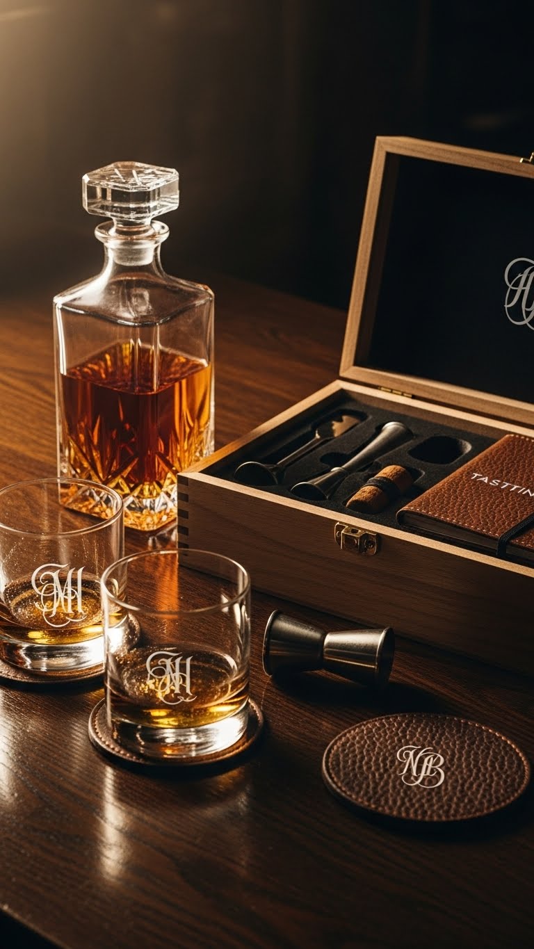 Elevate his home bar with a personalized whisky box or custom barware that blends function and flair—think engraved decanters, monogrammed glasses, and wooden cases sized for bottles and tasting tools. You’ll pick pieces that honor whisky tasting rituals and nod to barrel aging stories, while keeping setups minimal, durable, and travel-ready—perfect for someone who values style, craft, and freedom to enjoy spirits on their terms.