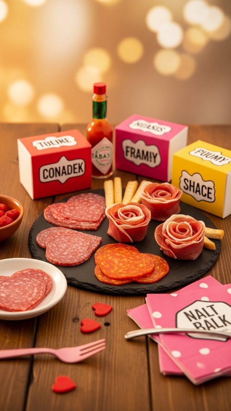 Lean into cheeky romance with naughty meathearts and playful snack presents that’ll make both of you laugh and snack together—think heart-shaped salami, prosciutto roses, and snack boxes with tongue-in-cheek labels. You’ll curate spicy charcuterie bites, pair them with cheeky chocolates, and add quirky napkins or a mini hot sauce. It’s bold, shareable, and totally unpretentious.