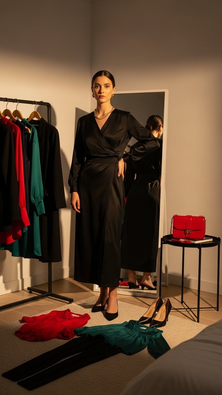 When you’re short on time, pick one wardrobe anchor—like a little black dress, a silk blouse, or sleek trousers—and build everything else around it; this keeps your look polished without overthinking.