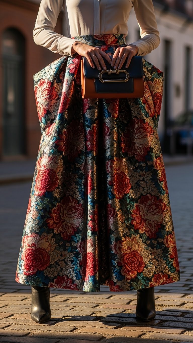 You’ll balance boldness by minding skirt proportions—micro, midi, or maxi—while a clean top keeps focus. Anchor the look with a statement clutch for contrast and freedom: unexpected color, sculptural hardware, or tactile details that make your outfit feel unapologetically yours.
