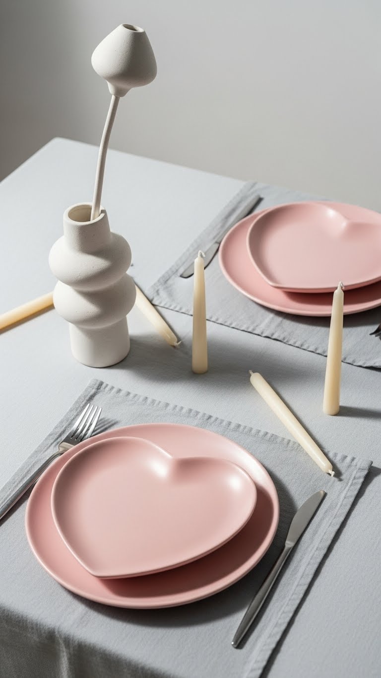 Pink & Grey Minimalist Tablescape With Heart Plates