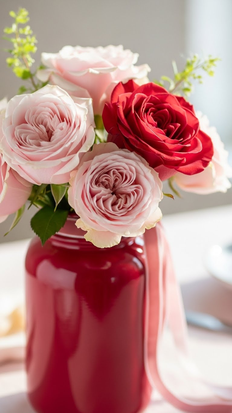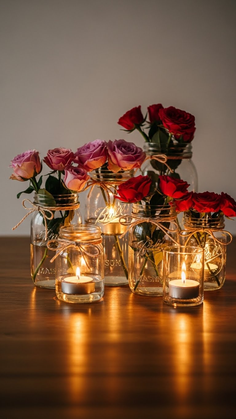 Mason Jar Roses + Tea Lights : Budget Centerpiece