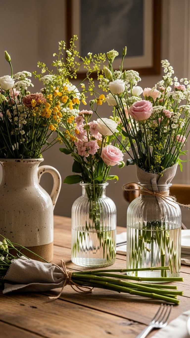 You’ll arrange stems in a vintage budvase, tuck sprigs of greenery, and tie stems with a velvet ribbon. The look feels curated, airy, and free—romantic without fuss, perfectly on-trend.