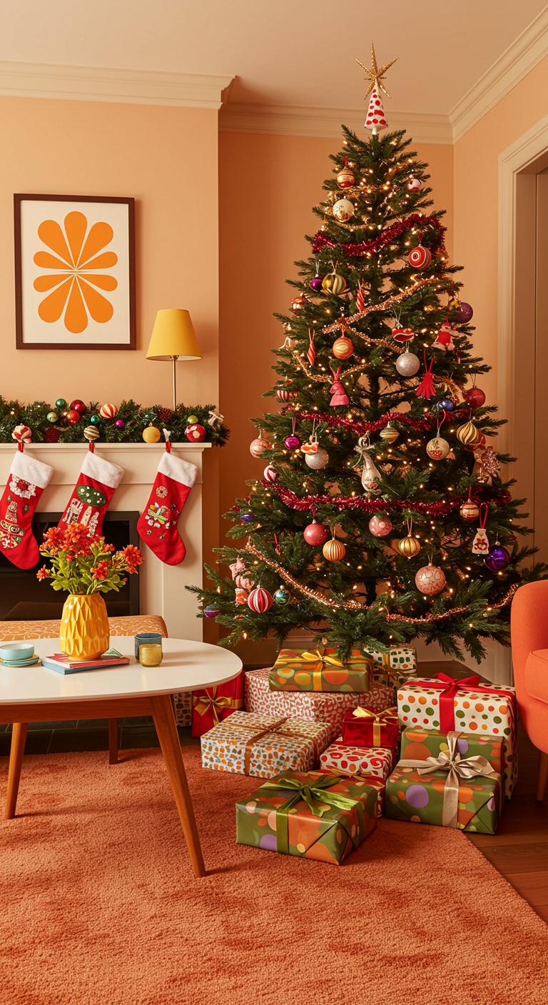 Embrace the vibrant spirit of the 70s this Christmas with a nostalgic decor theme that celebrates bold colors and playful patterns.