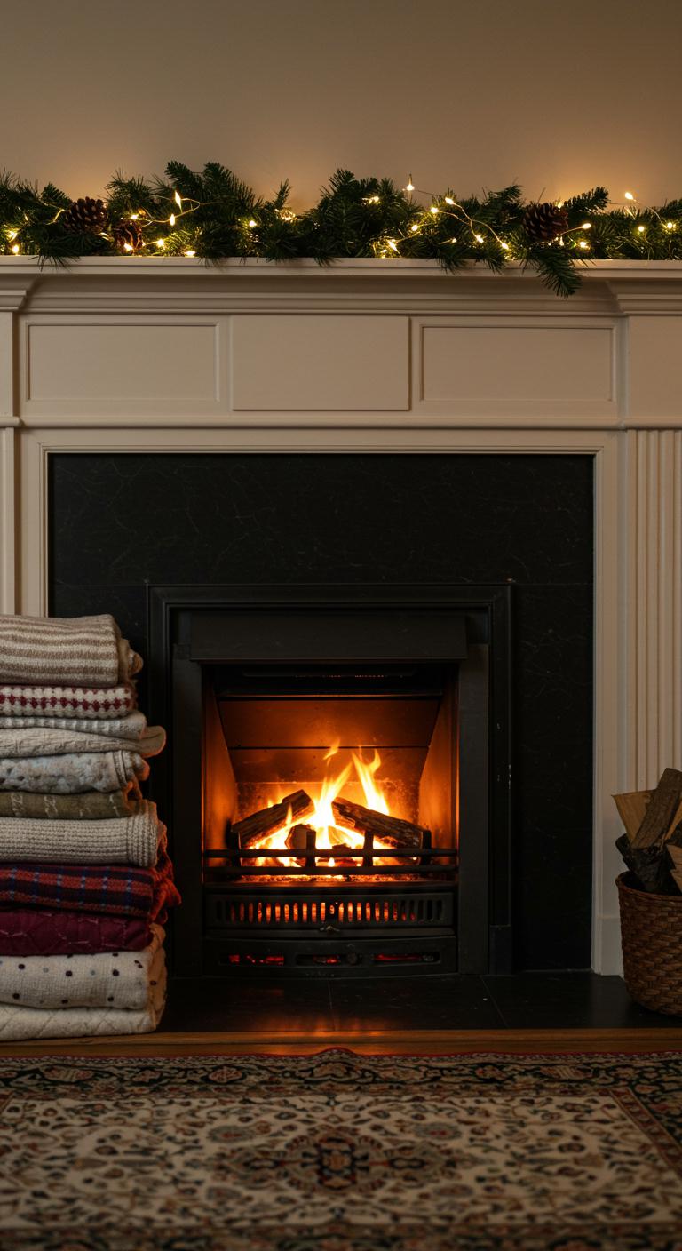 Adorn your fireplace mantel decor with twinkling lights and seasonal greens, creating a warm canvas.