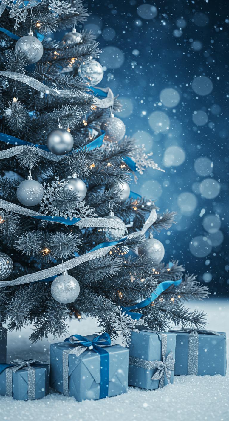 Classic silver and blue create a timeless holiday aesthetic that exudes elegance and sophistication.
