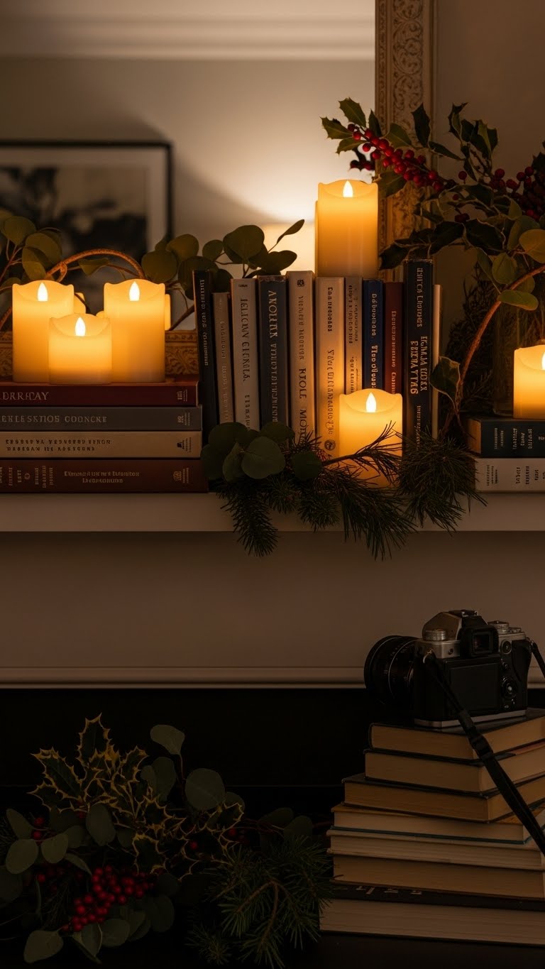 Flameless candles offer a safe flicker without the mess. Place them on tables or mantels for that candlelight vibe. Find packs online for $15. Set them up in groups for more impact. This keeps things cozy all year. Simple step: Turn them on with a remote and adjust the timer. Budget tip: Choose LED versions that last for years. DIY hack: Group them with household items like jars for a unique display. Use in bedrooms for a calming effect. It’s an easy swap for real candles.