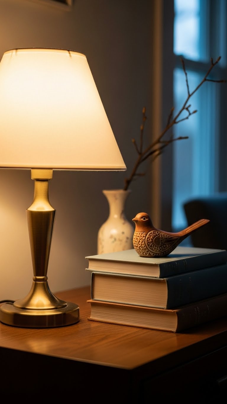 Table lamps provide a softer glow than ceilings. Put one on your side table for focused light. Pick up affordable ones for $15. Plug it in and position it. This changes the room’s feel. DIY: Shade it with a scarf for variety. Use for evening reads.
