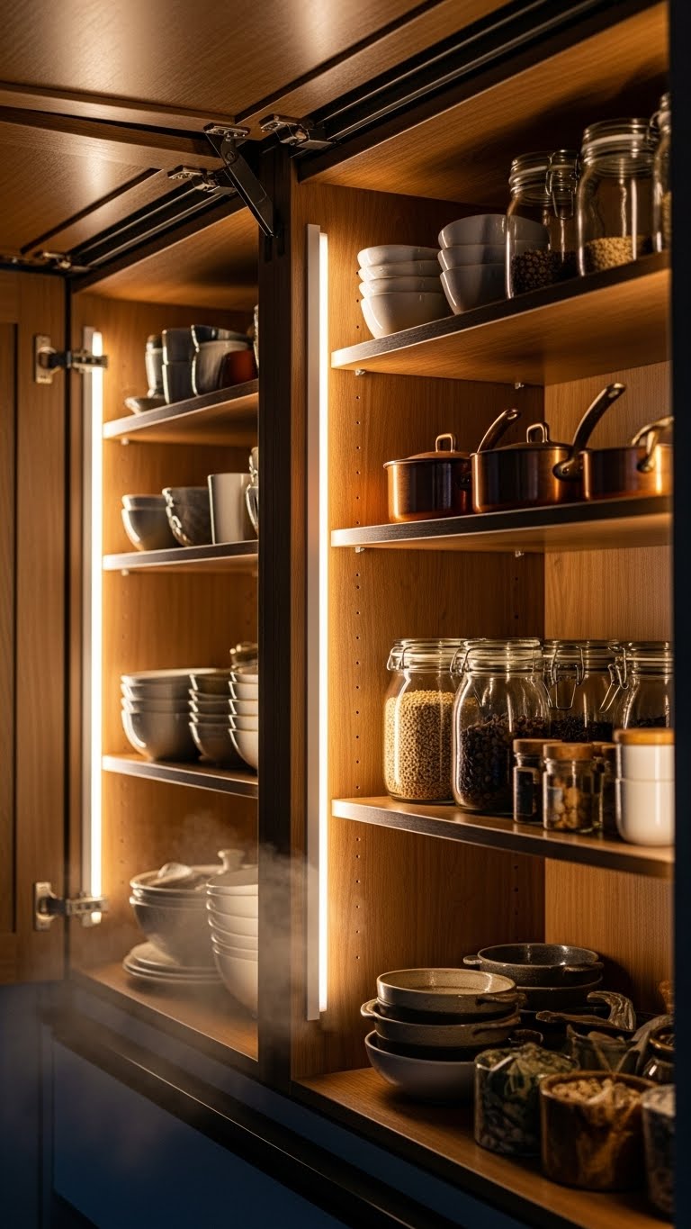 16. Lights in Cupboards for Hidden Warmth