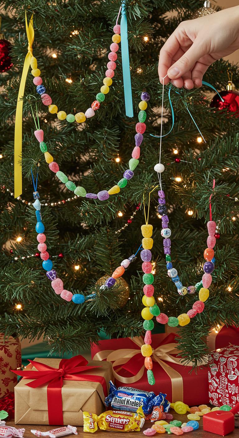 Bring a playful, tactile twist to your tree with a Candy Necklace Beads and Ribbons Tree that lets you craft as you decorate. You’ll share candy necklace history while threading DIY candy necklaces, mixing ribbon embellishments and colorful candy designs. These festive candy crafts create edible ornaments and inspire family crafting activities, simple holiday decoration ideas that feel freeing, joyful, and hands-on.