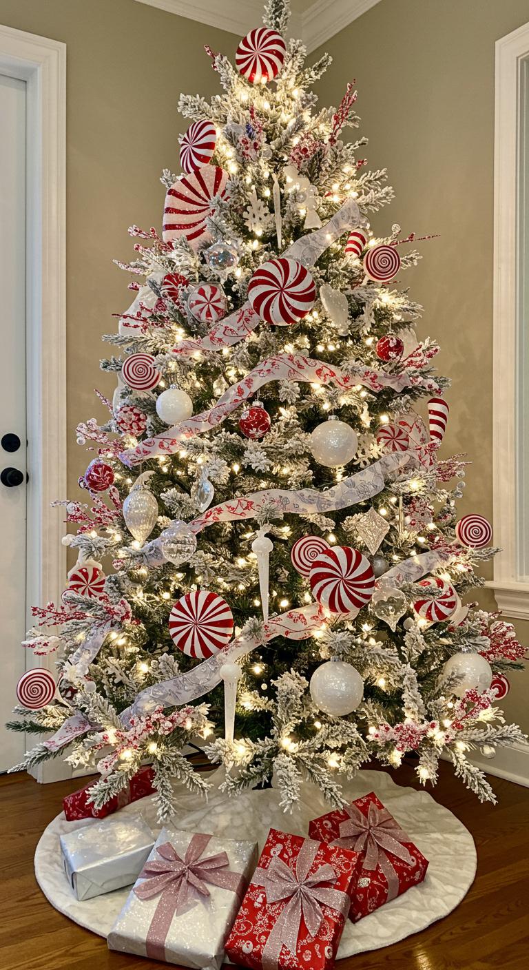 When you trim your tree with frosted branches, peppermint swirls, and shimmering ice-crystal ornaments, it becomes a cool, magical centerpiece that still feels cozy and festive.