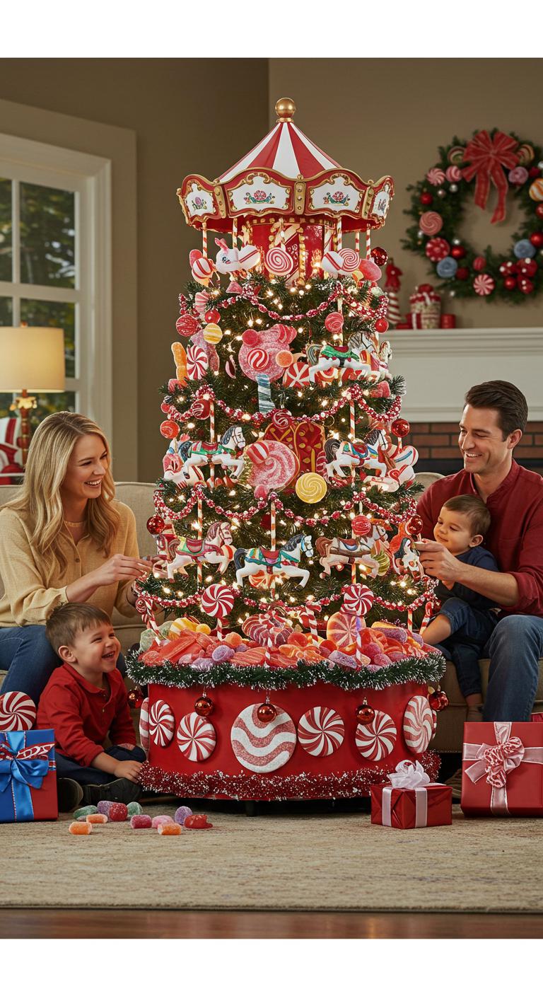 If you love motion and color, you’ll adore a Carousel Candy Carousel Tree that turns your living room into a playful fairground centerpiece.