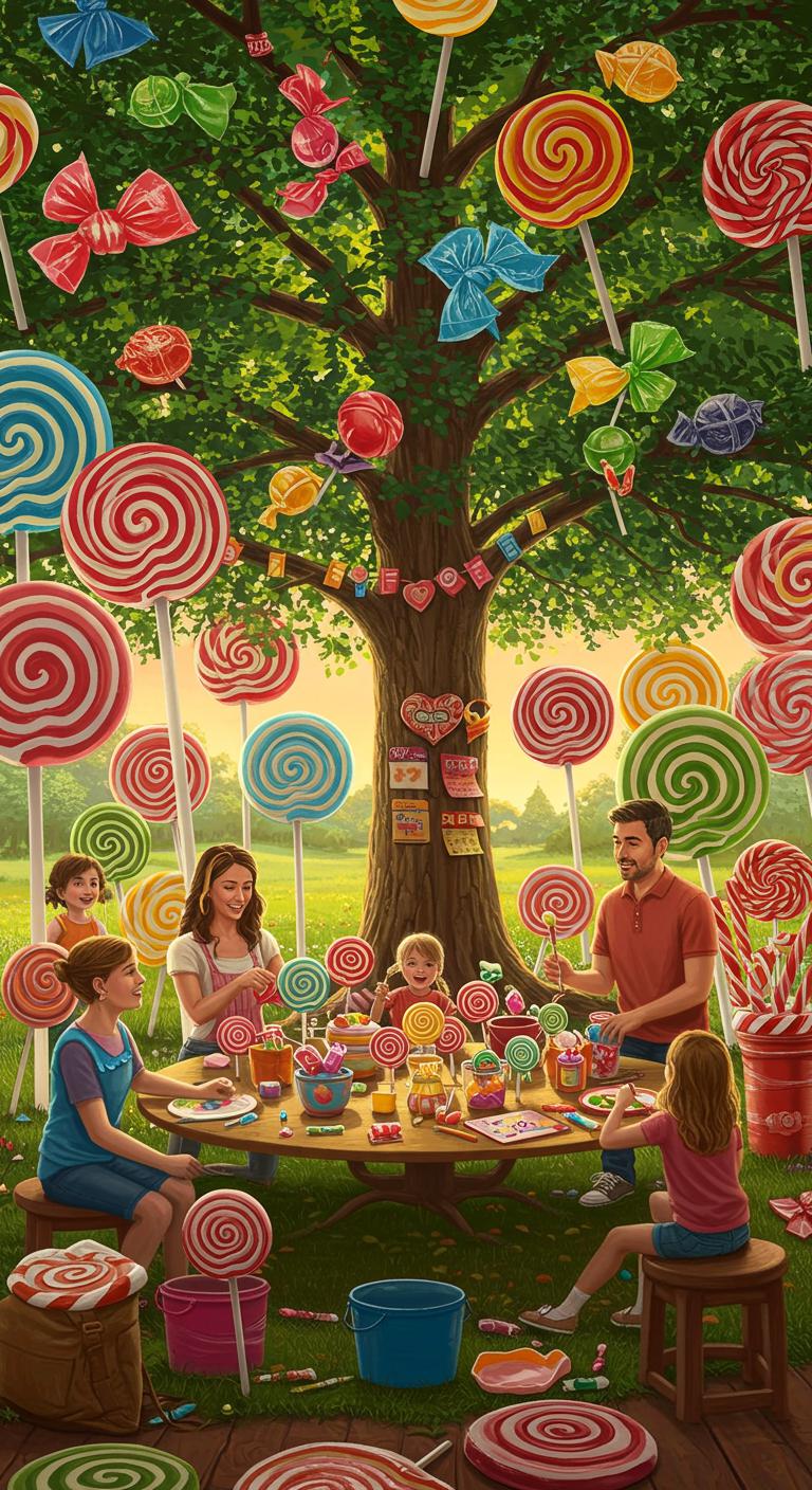 When you gather the family around a Lollipop Forest Family Tree, you’ll swap glitter for oversized, colorful lollipops that transform the room into a playful candy grove.