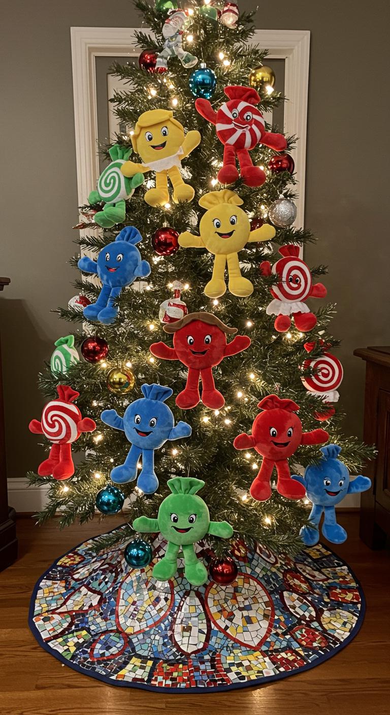 You can assign each plush candy character to a family member, swap stories while decorating, and let kids arrange their favorites.