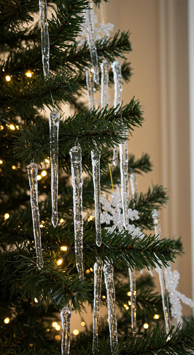 Think of sugar crystals catching the lights as you drape long icicle strands down the tree—you’re creating a winter-wonderland shimmer that feels both elegant and playful.