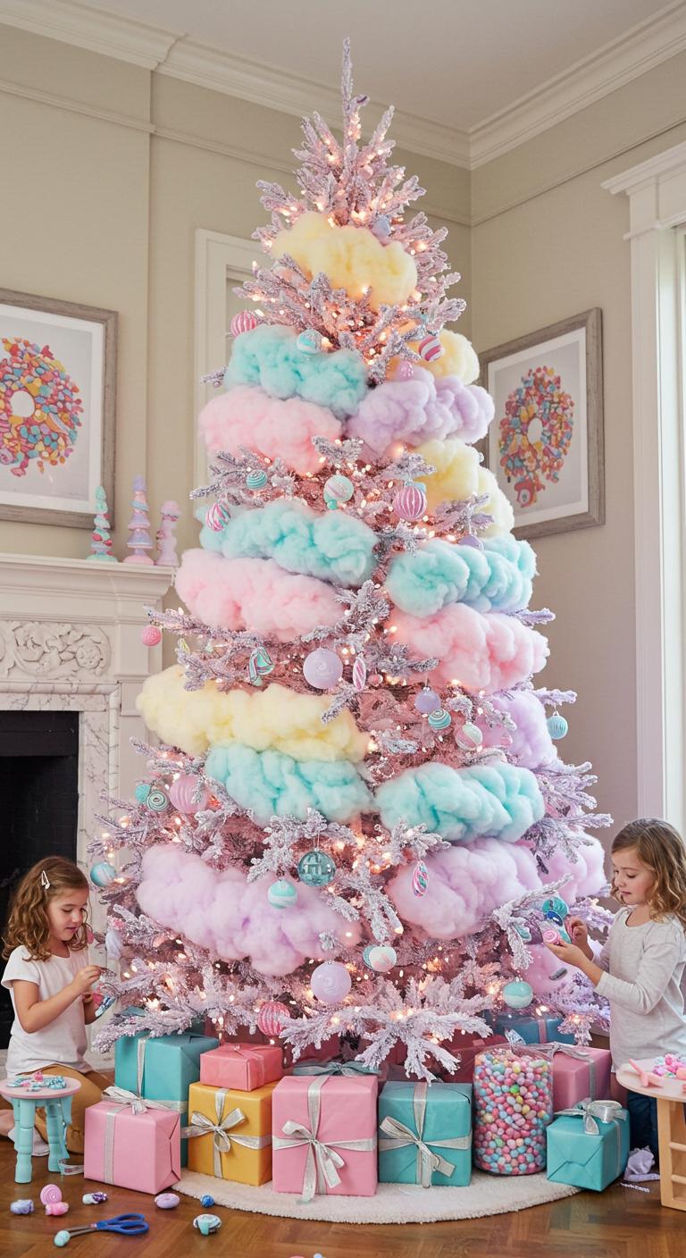 After the sticky-sweet fun of jellybean ornaments, try a Cotton Candy Floss Tree with pastel lights for a soft, dreamy alternative that’s just as kid-friendly.