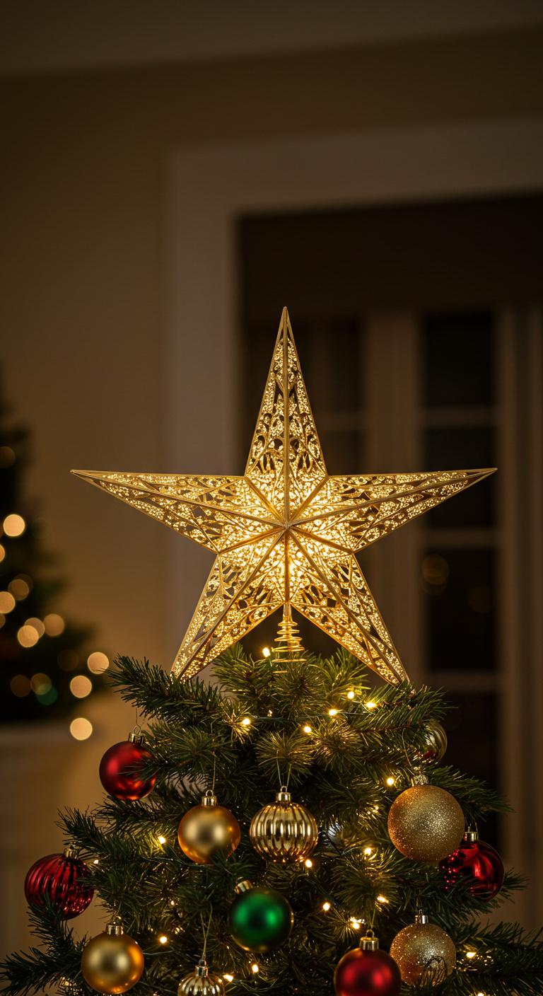 Choose from various gold star designs that sparkle against your tree’s decorations, adding a breathtaking focal point.
