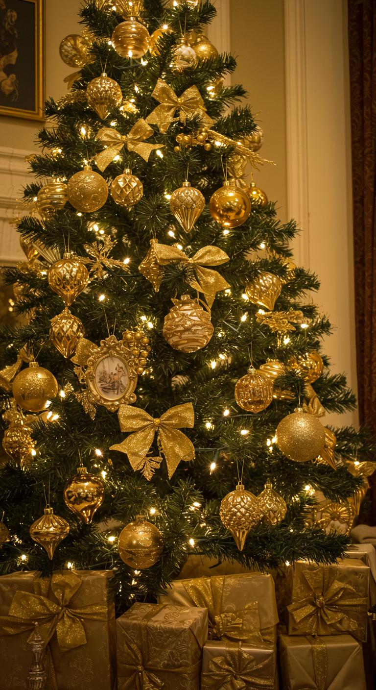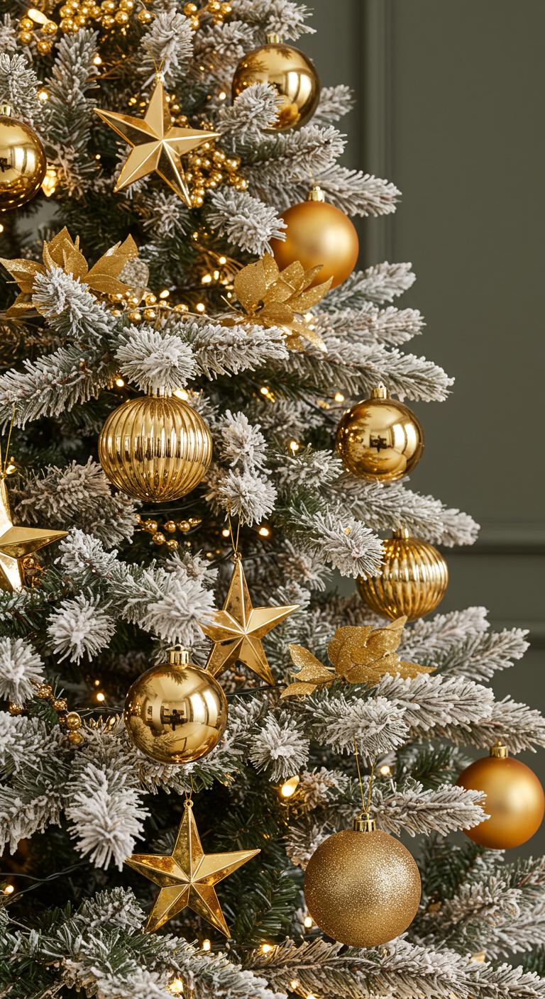 Building on the enchanting allure of frosted pine, glamorous gold ornaments can elevate your Christmas tree to new heights of sophistication.
