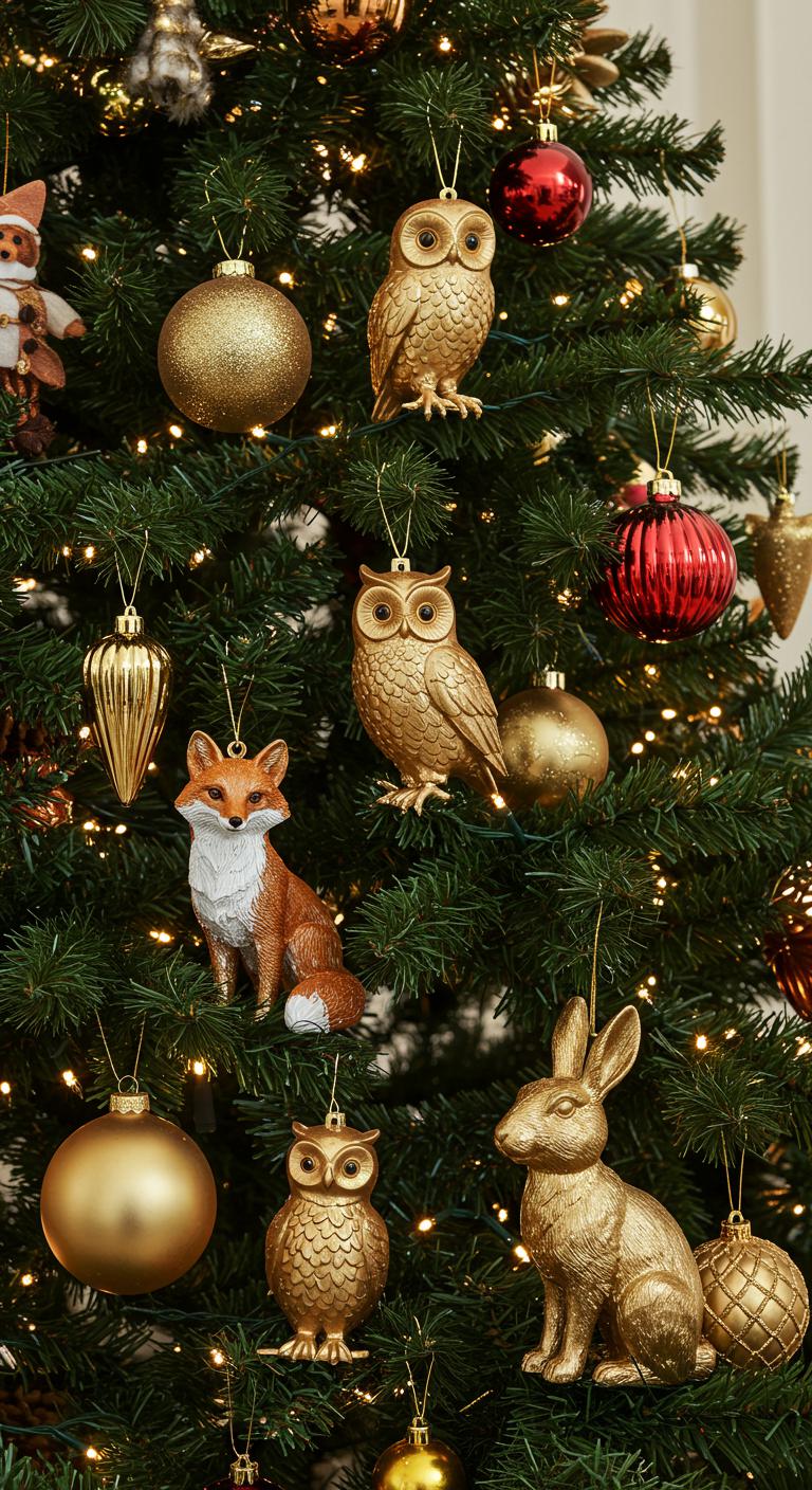 While you decorate your Christmas tree, consider adding whimsical gold animal figurines that bring a playful touch to your holiday display.